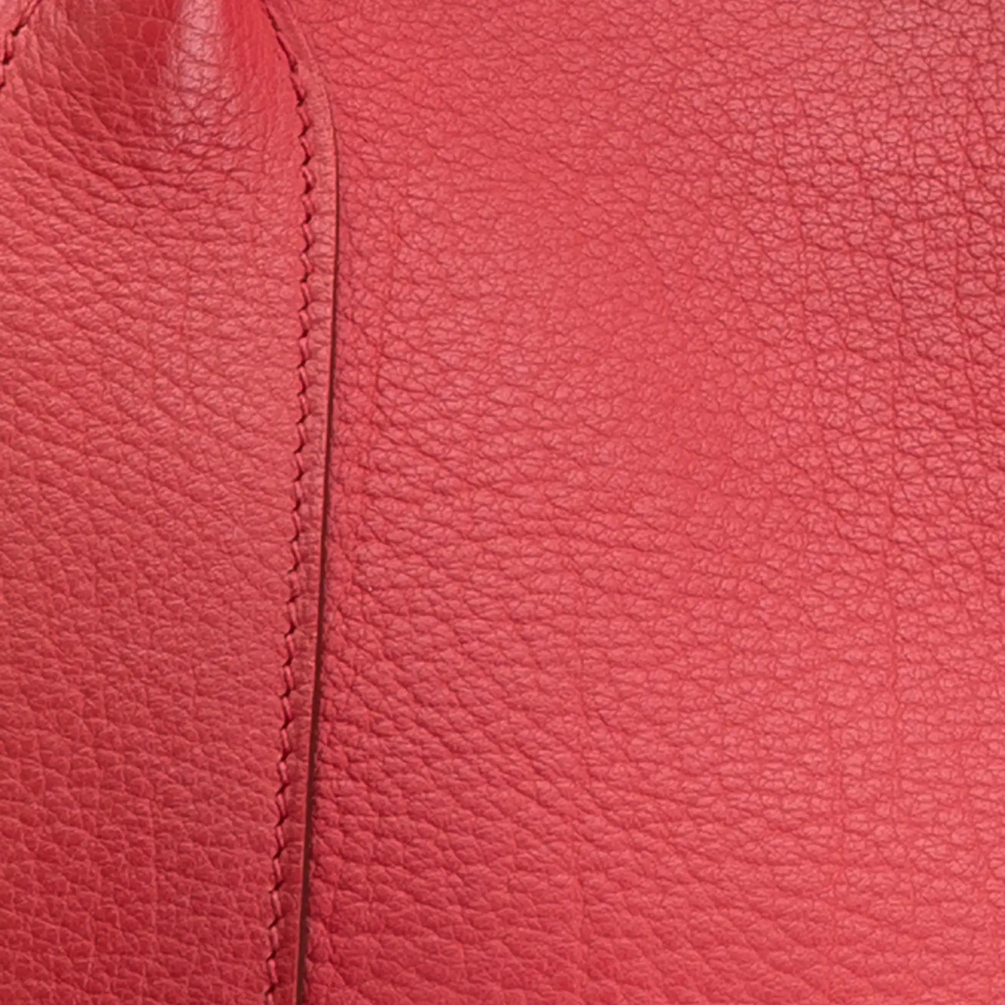 Zustand: Am Leder aussen sieht man allgemein ein paar dunkle Verfärbungen, Abreibungen und Kratzer, vorallem entlang der Ränder und Ecken. Der Aussenboden hat ein paar Gebrauchsspuren und Flecken. Im Innenraum sieht man ebenfalls Abnutzungsspuren und Verfärbungen. Die Hardware hat ein paar Kratzspuren.