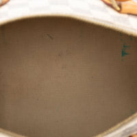 Diese Louis Vuitton Speedy 30 Bandoulière wurde aus weissem Damier Azur Canvas gefertigt. Inspiriert von der berühmten Louis Vuitton Keep All Reisetasche, besitzt sie einen doppelten Reissverschluss entlang der Oberseite. Im Inneren besitzt diese Tasche Steckfächer sowie ein Reissverschlussfach. Die Tasche wird in der Hand, im Arm oder mit Hilfe eines abnehmbaren Lederriemens über der Schulter getragen. Ein wunderschöner Klassiker und eines der beliebtesten Modelle von Louis Vuitton.